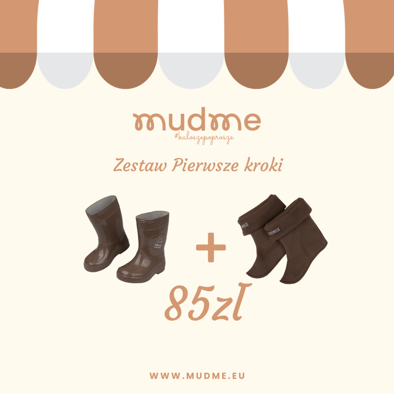 kroki. Aby zapewnić jak największy komfort dziecku przy pierwszych krokach warto postawić na zestaw kalosze + ocieplacz.