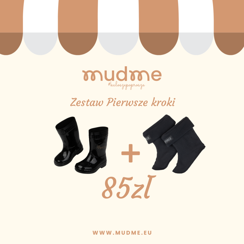 kroki. Aby zapewnić jak największy komfort dziecku przy pierwszych krokach warto postawić na zestaw kalosze + ocieplacz.