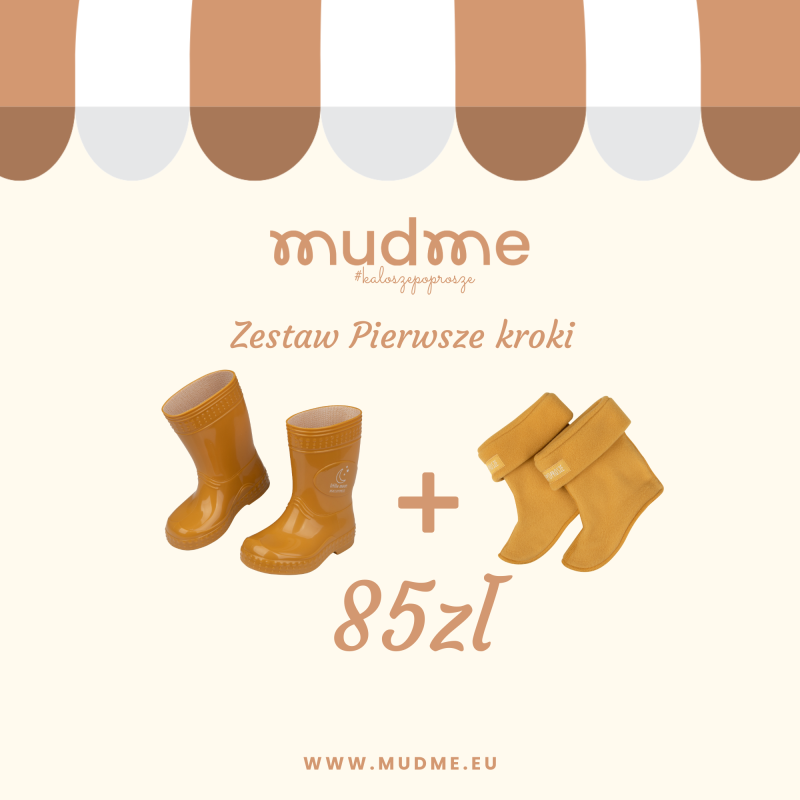 kroki. Aby zapewnić jak największy komfort dziecku przy pierwszych krokach warto postawić na zestaw kalosze + ocieplacz.