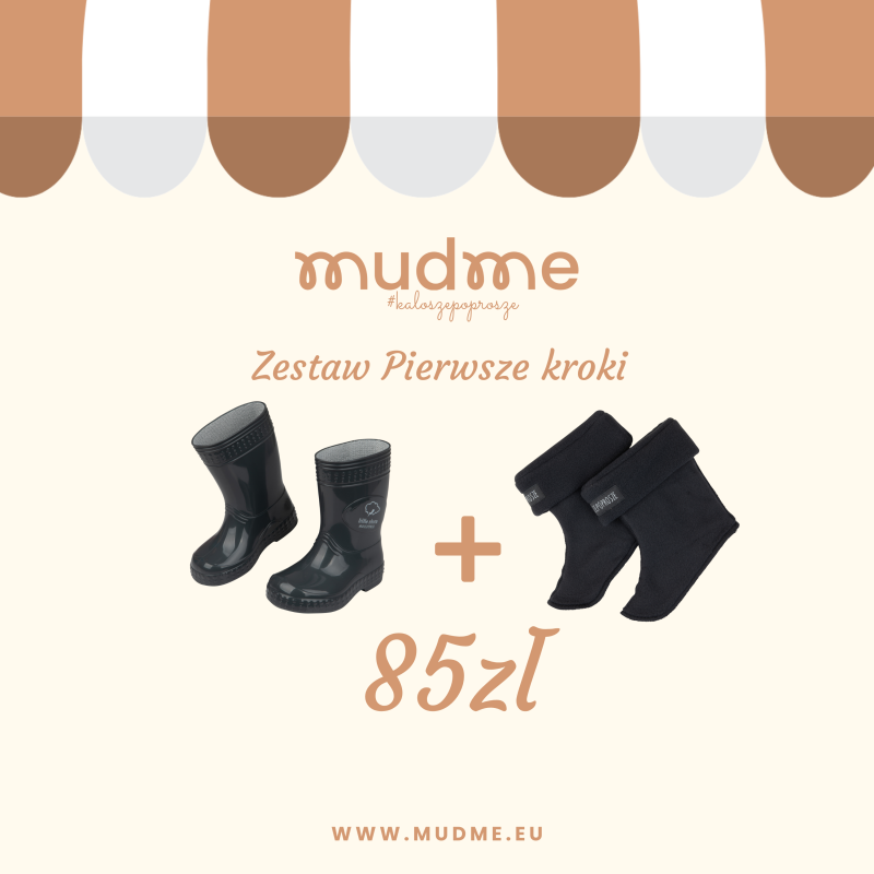 kroki. Aby zapewnić jak największy komfort dziecku przy pierwszych krokach warto postawić na zestaw kalosze + ocieplacz.