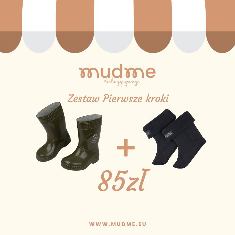 kroki. Aby zapewnić jak największy komfort dziecku przy pierwszych krokach warto postawić na zestaw kalosze + ocieplacz.