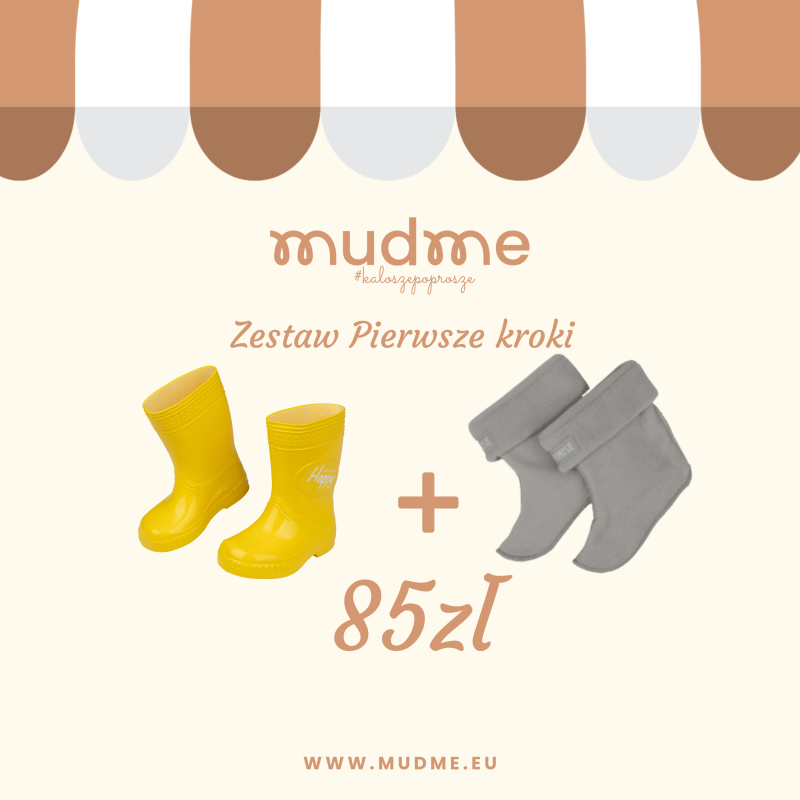 kroki. Aby zapewnić jak największy komfort dziecku przy pierwszych krokach warto postawić na zestaw kalosze + ocieplacz.